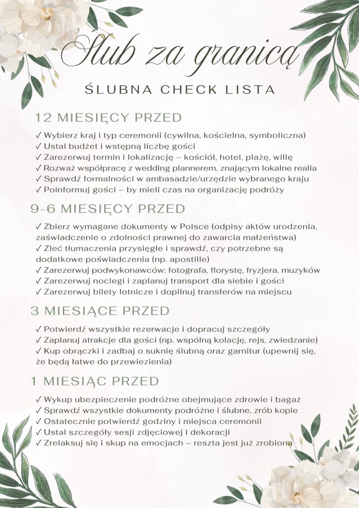 Ślub za granicą to przedsięwzięcie wymagające dobrej organizacji, ale przy odpowiednim przygotowaniu może być w pełni bezproblemowe. Kluczowe są trzy elementy: znajomość formalności, sprawna logistyka oraz dopasowanie uroczystości do własnych oczekiwań i budżetu. Dlatego warto skorzystać z pomocy lokalnego wedding plannera. Dzięki temu zamiast stresować się szczegółami, można w pełni cieszyć się wyjątkowym dniem w niezwykłym miejscu.