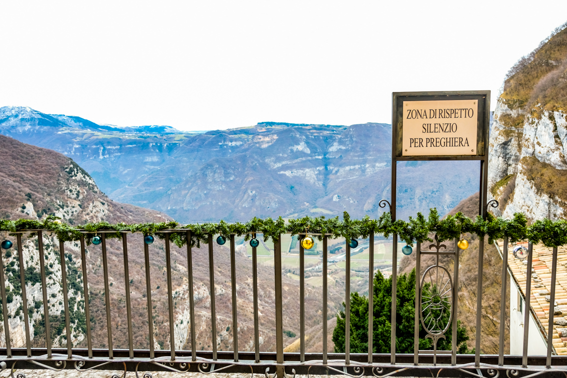 Sanktuarium Madonna della Corona wznosi się na wysokości 774 metrów nad poziomem morza, jakby wyrosło prosto z pionowej ściany Monte Baldo, wysoko nad doliną rzeki Adygi. Świątynia sprawia wrażenie przyklejonej do nagiej góry, dwie ściany kościoła (w tym ściana ołtarzowa) są litą skałą, co – zwłaszcza gdy rozejrzymy się po wnętrzu – robi niezwykłe wrażenie. Architektura harmonijnie wpisuje się w surowy górski krajobraz. To łaskami słynące miejsce przyciąga nie tylko pielgrzymów, którzy od wieków szukają tu skupienia i zostawiają tu liczne wota w podzięce za cudowne ocalenie, ale także miłośników górskich wędrówek i widoków.